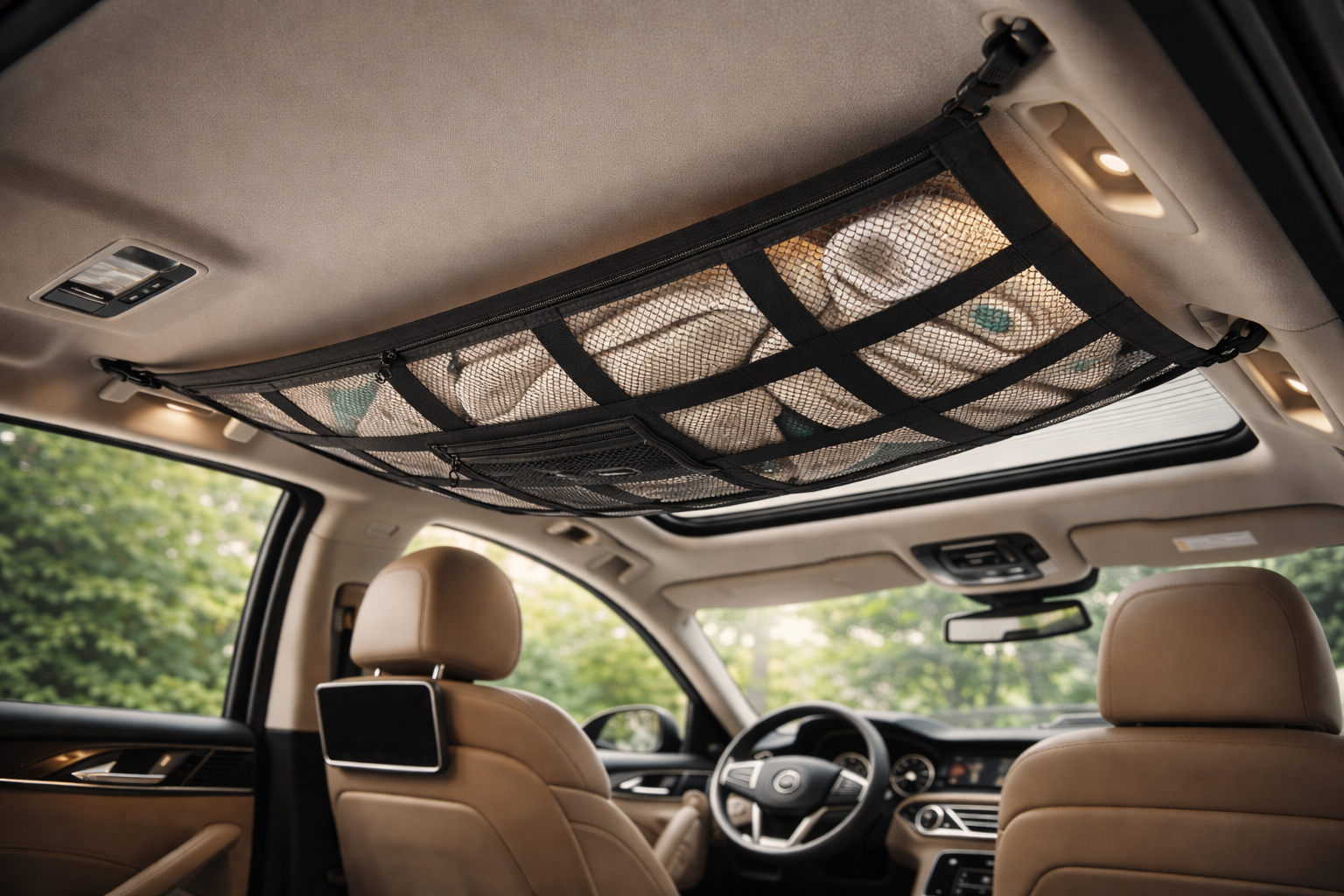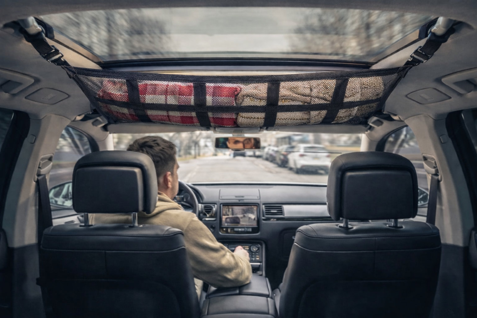 Notre filet de rangement exploite le plafond de votre véhicule pour garder vos essentiels accessibles, propres et sécurisés.